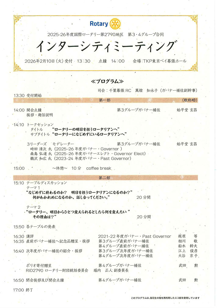 ◆ 2026年 2月10日 1076回 振替例会 ◆