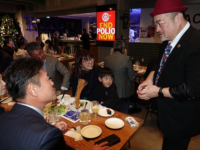皆さま、本日は年末のお忙しい中、クリスマス忘年家族例会にご参加いただき、誠にありがとうございます。今日はいつもの例会とは趣を変え、よりリラックスしてお過ごしいただける会場をご用意しました。